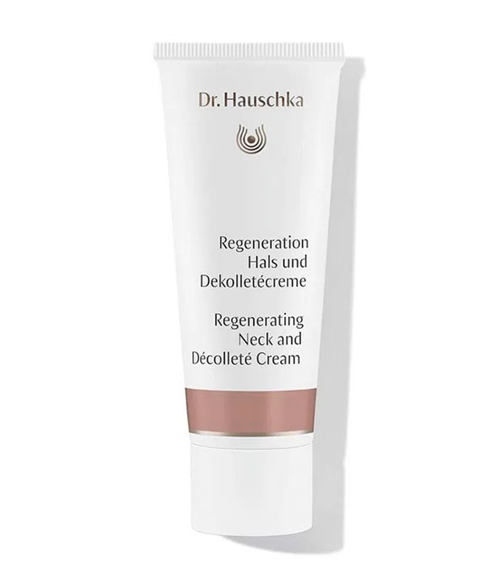 德国护肤品牌Dr Hauschka主打再生修护功效的颈霜,质地是creamy的乳霜状,采用纯天然的配方制作,不含香料、色素和防腐剂等不良成分,同时也未经动物实验。植物性配方结合了药蜀葵、白桦叶、红菽草、夏威夷果仁和摩洛哥坚果油,为肌肤深度补湿,抗皱祛纹,恢复光滑紧致。