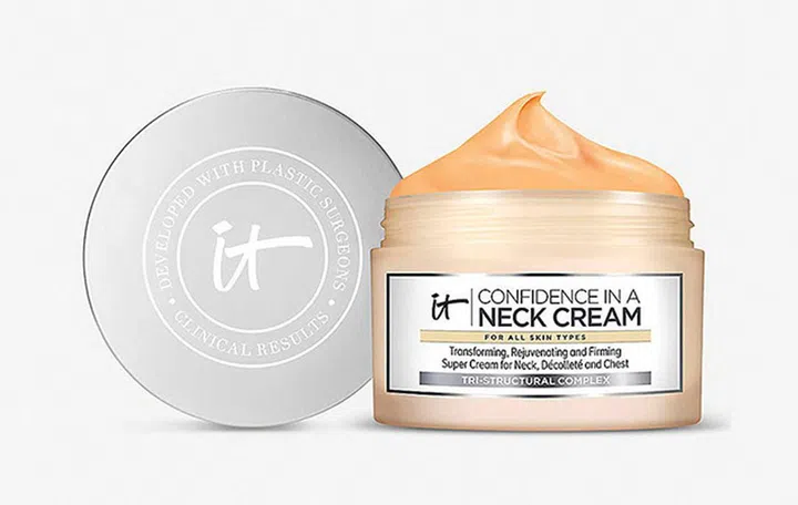 由专业整形外科医生研发的美国美容品牌——IT Cosmetics的这款颈霜质地清爽好吸收,成分含弹性蛋白、胶原蛋白、海藻提取物和乳木果油,给予颈部肌肤深层滋润。送上小提醒:记得先看说明书,了解使用的手法!涂抹颈霜时,手势要轻柔缓慢,以往上推的提拉方式涂抹。