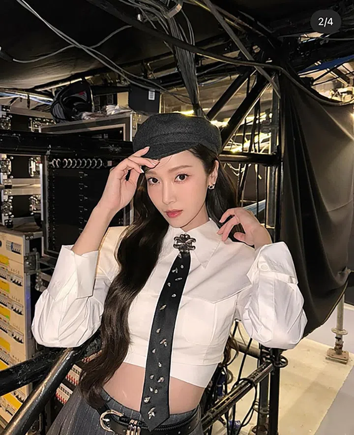 采用柔和渐变的技巧,模糊和柔化唇线边缘,打造出自然过渡的朦胧美唇。这样的唇妆,唇中颜色最深,然后向外逐渐晕染、变淡,为妆容增添一抹轻柔、朦胧的美感。模糊的唇妆同时也能在视觉上打造更丰盈的嘴唇。虞书欣的这个妆容是韩国知名化妆师Maeng(也是Blackpink的御用化妆师哦)为她量身打造的,模糊的唇妆也是妆容的一大亮点,近期都不会过时!