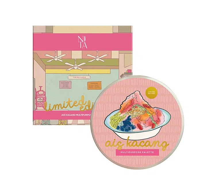 有趣、古怪,非常适合需要流行色彩的爱美人士!Nita Cosmetics是一个马来西亚美容品牌,品牌非常自豪地将当地传统甚至美食融入产品的名称和包装中,推出了一系列适合所有肤色的低过敏性化妆品。其中Ais Kacang Multipurpose Palette里面有4个深浅不一得暖色调,混合使用可以当腮红,当然你也可以分开始用,分别可当做高光和修容。