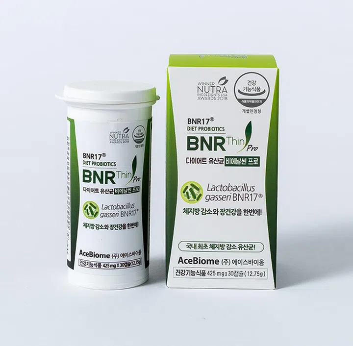 在韩国卖得满堂红的BNR17 Diet Lactobacillus BNRThin Pro ,也是首款在韩国获批准的益生菌补充丸。经过20年的研究,BNTThin发现Lactobacillus Gasseri BNR17®,一种由人类母乳中分离出来的益生菌菌株,它能够很好地改善消化系统和对抗坏菌,进而达到减脂和改善肠道健康。