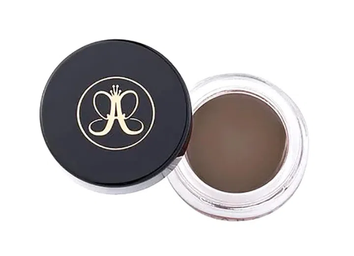 眉尾短、下垂且稀疏,显得整个人都会少了精神气,日常妆容因为磨蹭或 流汗,画好的眉尾也最容易不知不觉消失,令“无眉星人”现形!Anastasia Beverly Hills的这款明星产品眉胶,具有防水和防晕染功能,并以显色度高和持久力强大赢得许多彩妆迷的青睐。用一把短而硬的斜頭眉刷,沾取少量眉胶,模仿毛发形状,细细勾勒眉尾或填补空隙位置,打造出根根分明的自然毛流效果。