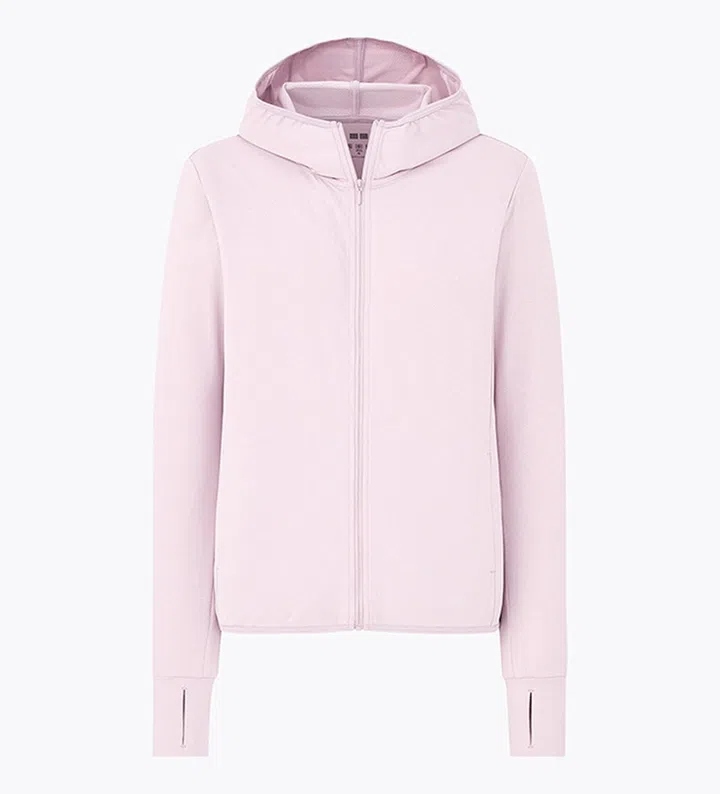 Uniqlo推出具防紫外线作用的系列,具有高达15至50+的UPF(衣服防晒系数)这款长袖外套具有高效的防嗮效果,重点是它含具有快干和抗菌的技术。如果不喜欢穿着长袖衣服外出,这款外套轻薄易携带,跑步或进行户外运动时穿上它也不会感觉厚重。