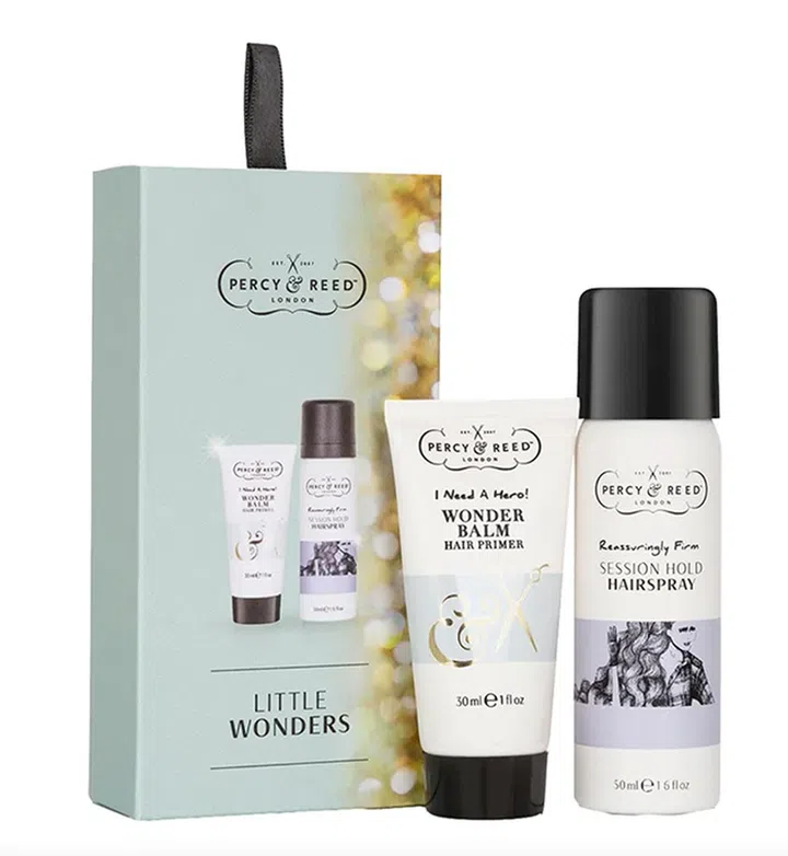 这套护发套装虽小但性能很高,并能保证“一夜狂欢后”,仍然维持你该有的发型。本地空气湿润,刚费劲心思卷好的头发可能维持不到半天,这时你就需要这套定型组合,它以抵抗湿度并同时维持头发的灵动为卖点,很适合送给身边爱做发型的女友们。里面包含I Need A Hero Wonder Balm Primer 头发打底膏(30ml)和Reassuringly Firm Session Hold Hairspray头发喷雾 (50ml)。