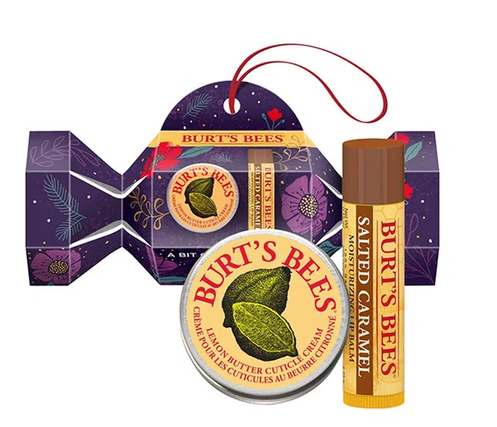 这套圣诞套集合了Burt's Bees Salted Caramel圣诞限量版润唇膏(4.25g),和Lemon Butter Cuticle Cream指原油。两款商品均由100%天然成分制成,含有可可脂、椰子油和对环境友好的蜂蜡等,来保护你的嘴唇和指甲。更加分的是,它的包装是cracker形状,还可以当做圣诞树挂饰!