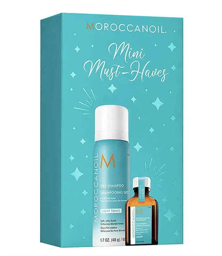 这款护发组合包含了Dry Shampoo Light Tones干洗发剂(65ml)和Mot Light护发油(15ml),复合摩洛哥特有的香味,混合了辛辣的琥珀和温暖的花香。它们也含有紫色色素,适合送给浅色头发的朋友哦。