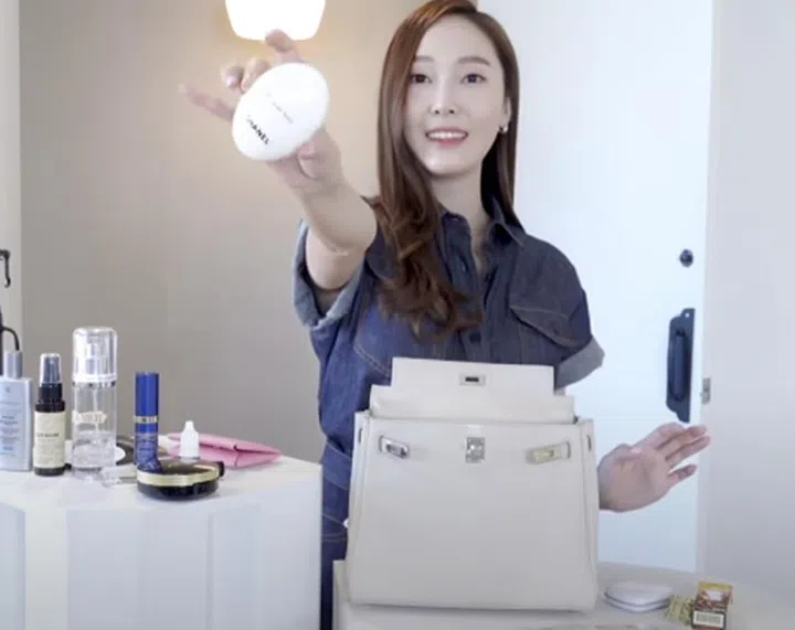 郑秀妍包包里一年四季必不可少的就是护唇膏,而La Mer的护唇膏更是她的第6罐。这款含有薄荷的绒面护唇膏能镇静、修复、软化双唇,为缺水的唇部加强自然水分屏障,防止唇部干裂,上妆前使用也毫无压力。
