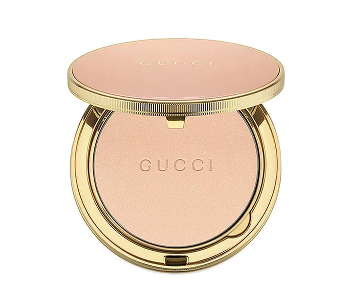 Gucci定妆粉简洁复古的粉金包装已深得小编的心,满满的奢华感。打开来,印有Gucci字样的粉饼,粉质细腻轻薄,用来绝不飞粉,除了具有高控油效力,还能平滑肌肤、隐形毛孔。粉饼下层是柔软的微纤维粉扑,将它在粉饼上轻轻转一圈,再均匀轻压鼻翼等易出油的部位,妆容更细致服帖。