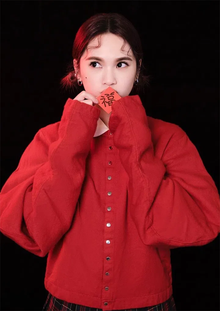 蔡依林带着虎年特效与姐妹们同入镜!长发版羊毛卷厚重温暖,适合冬季过年的气息。Jolin因居家过年,只是化了简单的妆容搭配玫红色的唇膏。