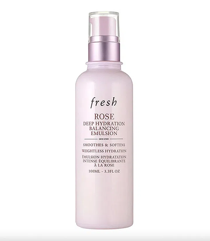 肌肤很容易在天气闷热时失去健康的水油平衡,而这款Fresh刚推出的水乳就能帮任何肤质平衡水油脂,同时减少毛孔的堵塞。它含有大马士革玫瑰、透明质酸和蓍草提取物,质地轻薄,能够迅速地被吸收,让肌肤柔软如花瓣。