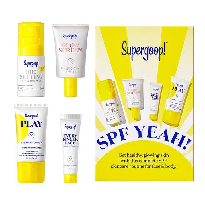 喜欢户外运动但不喜欢防晒乳的黏腻?Supergoop!的防晒质地轻薄凉爽,可快速推开并不会感到油腻,更不会泛白,可全方位抵挡紫外线、蓝光、污染和红外辐射对皮肤的侵扰。套组里有四款品牌的“防晒最爱”,各有不同,有日常防晒,还有自然的提亮防晒,可与其它护肤品叠加,也可当做面霜单独使用。
