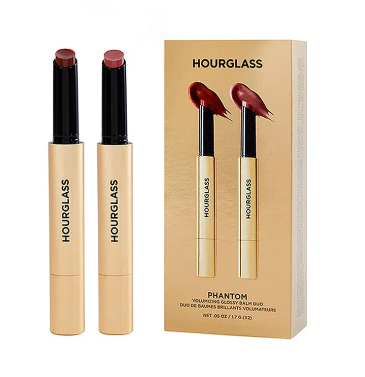 Hourglass新品Phantom Volumizing Glossy Balm也包含在圣诞套组内!创新3合1混合配方,可像润唇膏一样,打造滋润饱满的唇妆,并提供高光泽效果。这款唇膏的注入修护配方,让你的嘴唇清透保湿,且不会有粘腻感。组合里有Slip 125和Rouse 180,一深一浅,根据不同场合做转变!