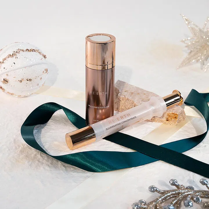 Re:erth一口气推出了15种针对不同肌肤问题的圣诞礼盒,每一套里面都有品牌备受喜爱的明星产品,产品搭配绝不马虎。其中这套Brightening套组包含Clarifying Cleanser洁面乳、 Illuminating Concentrate精华、Calming Toner精粹水和Multi-Targeted Elixir精华,专门负责击退局部斑点和黑色素沉淀。