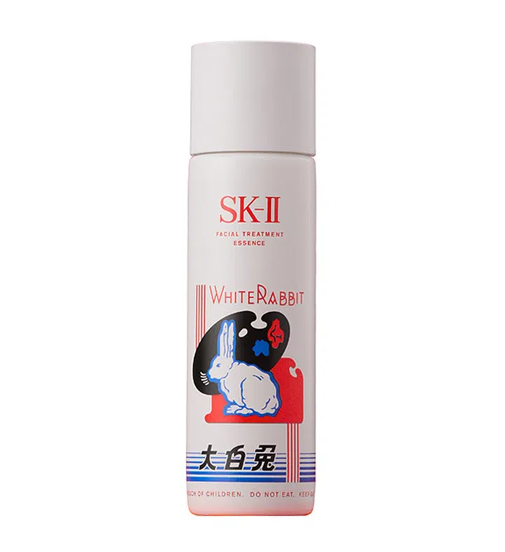 SK-II惊喜联手“大白兔”推出限量设计。在新春套组里包含的招牌神奇水,以蕴含超过90%的Pitera™ 成分,可以深度调节皮肤状态和补水保湿。此外,套组里还有cleanser、clear lotion和milky lotion的小样,让你的肌肤晶透如初,以自信与活力迎接兔年。