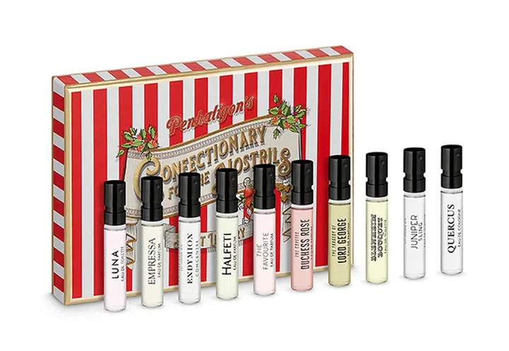 Penhaligon是世界上最著名的香水屋之一,其丰富的遗产与英国历史及贵族文化融为一体。这个圣诞Penhaligon打算带你走进充满甜蜜的世界,一个一切皆有可能的地方。这个迷你香氛组合里包含了10种热门香型,包括Lord George,Duchess Rose,Halfeti,Empressa,Luna,The Favourite,Blenheim Bouquet,Quercus,Endymion Concentre和Juniper Sling。独乐乐不如众乐乐,你可以找几个喜欢不同香氛的朋友们分享这个圣诞礼盒哦。