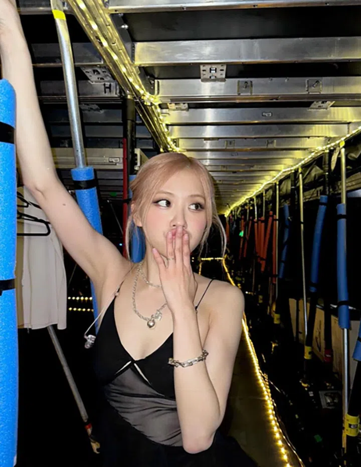 除了这款引发热议的妆容,Rose在Born Pink世界巡演的妆容也均为经典。但你知道吗?Blackpink御用化妆师Maeng曾在采访时透露,Rose的中庭偏长,所以她的妆容首要就是缩短中庭,提升她的幼态感,打造出既酷又带有女人味的妆容。