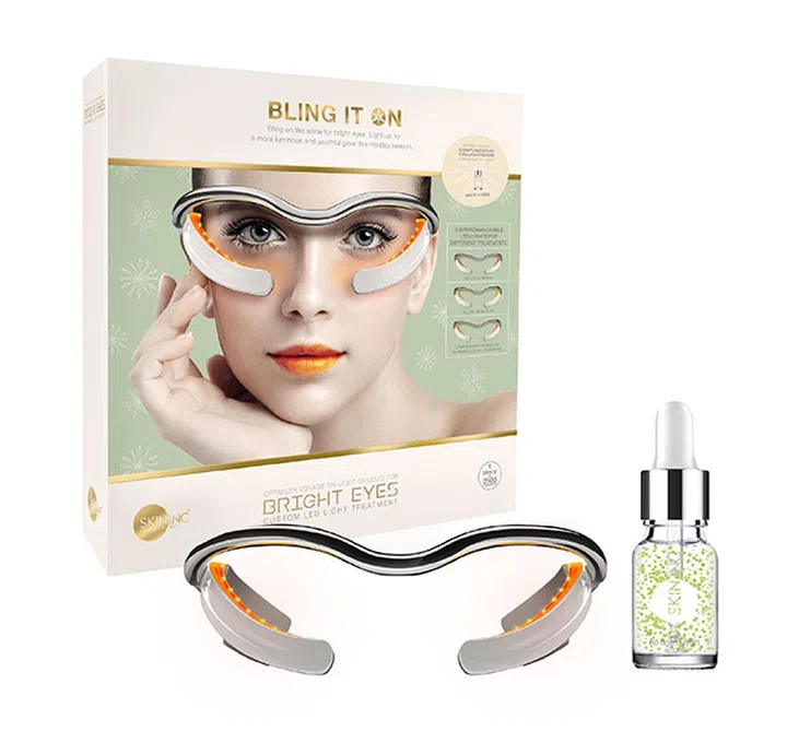 睡眠不足、长时间用眼、荧幕前的蓝光等都会对眼周肌肤造成伤害,导致眼周血液堵塞形成越发严重的“熊猫眼”。Bling It On套组内含Collagen Serum精华(10ml)和Optimizer Voyage Tri-Light™ Glasses——3合1功能型y眼部美容仪,结合美国宇航局的发光二极管灯,可通过照射解决多种皮肤问题,放松双眼并提亮眼周肤色。