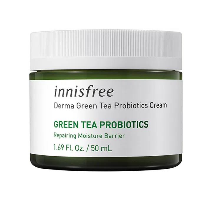 主打天然成分为配方的Innisfree,推出的乳霜中所含的绿茶益生菌,源自于济州岛绿茶发酵中所产生的乳酸菌,将它运用在肌肤上可提高肌肤的防御屏障,对抗外在的有害物质危害肌肤。绿茶神经酰胺成分经实验证明,可有效紧锁和保湿肌肤,号称两个星期内就能看到效果哦!