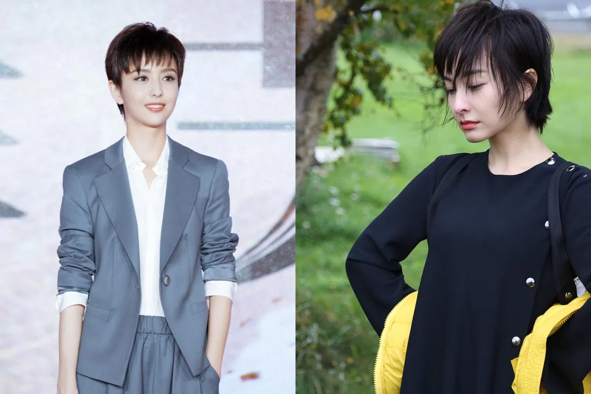 景甜配上短发造型,则依旧甜美优雅!粉嫩色系妆容,突显女性特质,搭配浅色系短发,降低锐利感,整体清爽又轻盈!