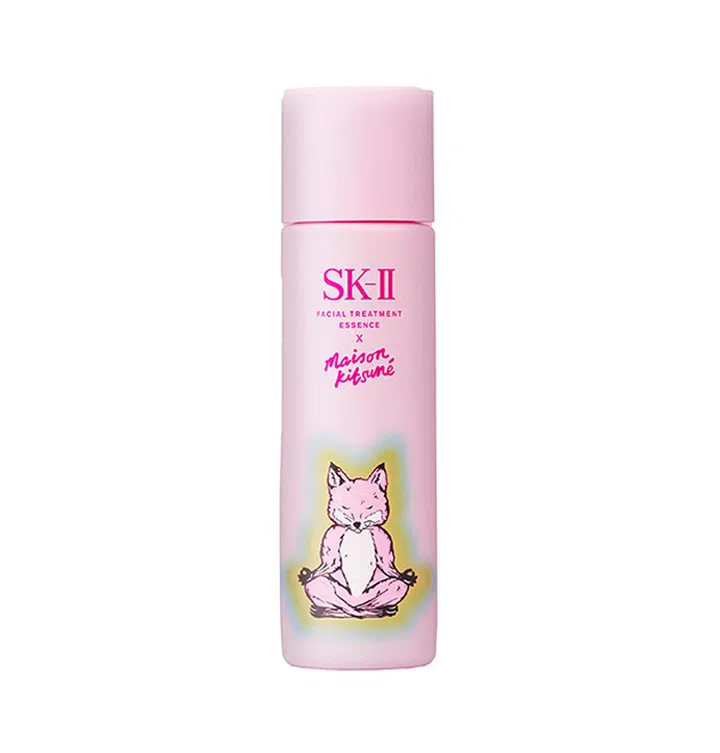 继红蓝狐狸限定后,SK-II再次与Maison Kitsune合作,携手推出“绯色小狐狸神仙水”。这次的合作是经典与浪漫的相遇,光晕加身的粉色小狐狸散发着自信与活力,也有着开启更多美好期望寓意。