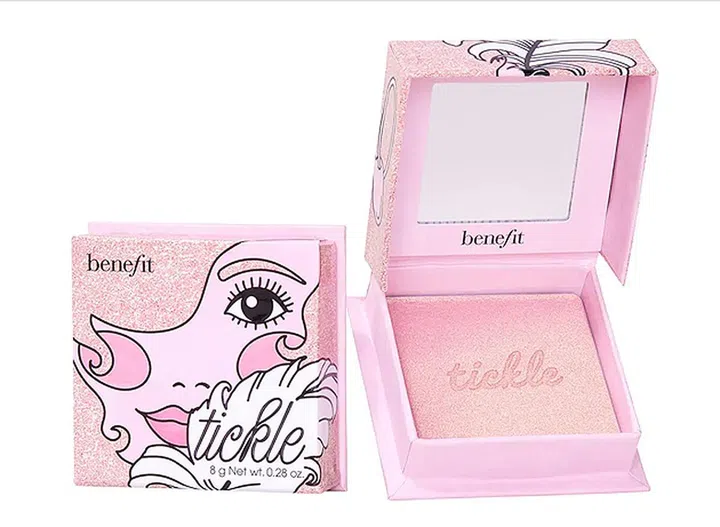 Benefit的这款高光属于烘焙粉里面比较自然的选择(仍旧很闪!)——香槟的底色透露着粉色的偏光,尤其适合冷色调的亚洲肤色!相比Tickle,Cookie色号则偏暖色调,适合肤色偏黄的女友们。选用小型刷子将高光刷在鼻尖、苹果机、唇峰等位置,还请不要大面积使用!