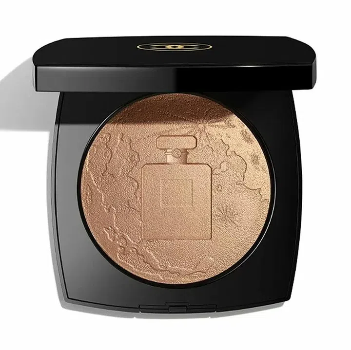 另一盘依旧在售卖的假日限量高光~在浪漫的色调里,这款独特的Éclat Lunaire Oversize Illuminating Face Powder 让人目不转睛。经典的N°5香水烙印在一片玫瑰金的蜜粉中,细腻的粉末带着珠光,宛如温暖的月光。这款蜜粉不仅可帮助雕塑面部轮廓,更以柔和的珠光光泽增强妆感。