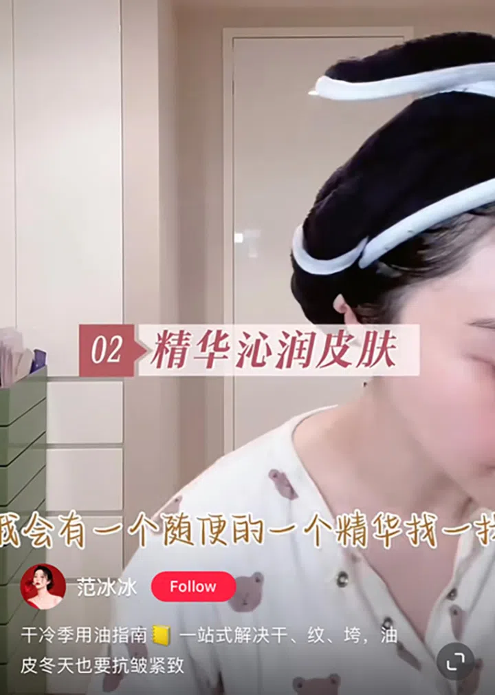 洗完脸后先用爽肤水打底,净润一下你的皮肤,记得不要吝啬爽肤水的用量哦,否则在皮肤没有任何滋润的情况下很容易被拉扯。范冰冰没有爽肤水好物介绍,任何一个让你感到舒适,不敏感的爽肤水都可以。