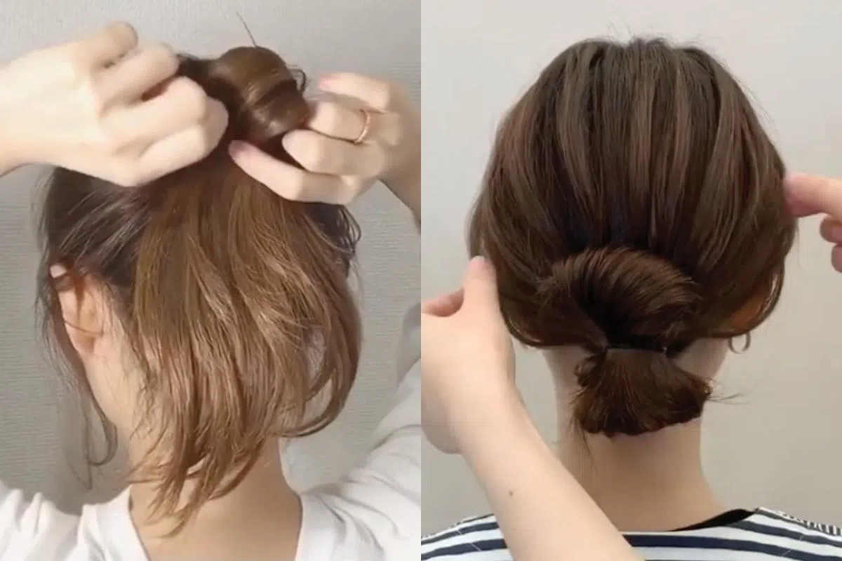 头发不长不短,有点尴尬?怕热的你不妨考虑这款”半丸髻”。之所以是“半”,是因为绑好马尾后,只需将发束对折一捆即可,发尾连收都不用收。这时,拿出你的精美发饰点缀,谁也看不出这个发型竟如此简单。
