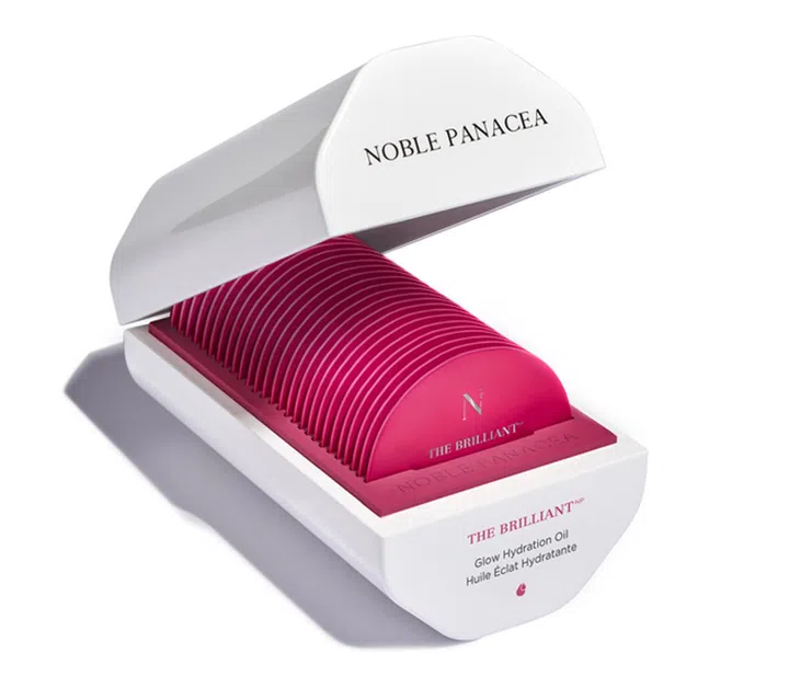 Noble Panacea一次推出了两款面部精华油——The Absolute Nourishing Lift Oil和图片里的The Brilliant Glow Hydration Oil。两款精油均采用颠覆性的OSMV™ 技术,该技术可完好封存水溶性的活性成分,如产品中的透明质酸,并将最“新鲜”的成分快速注入肌肤底层,这是之前油类产品不曾做到的。玫粉色的补水精油采用纯素食配方,可重新平衡肌肤的油脂分泌,防止自由基损伤并降低皮肤中的水分流失。