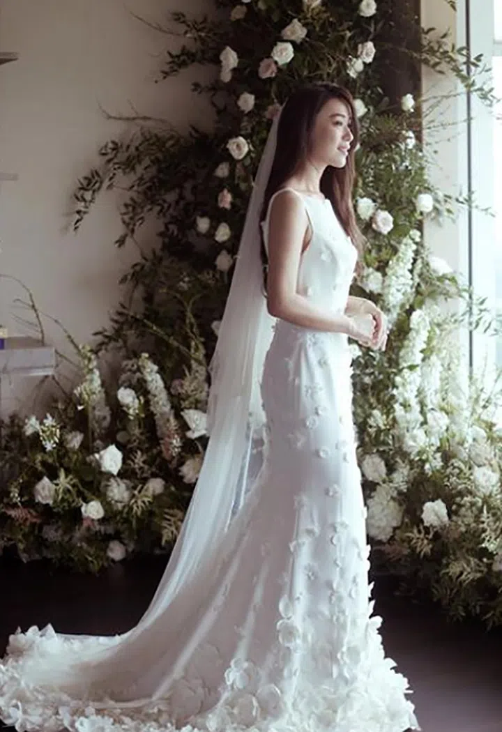 我们平日里都很忙,婚礼前几个月才开始讨论妆发,哈哈!发型师Dexter跟我都想为Rebecca打造很高贵的look。不会因为她是明星就想着打造特别浮夸的妆发——她还要是她!虽说平日里的Rebecca已经很高贵了,但我们想让她比平时更高贵。