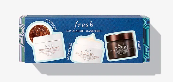 Fresh在今年圣诞推出面膜“三剑客”组合,让大家不需再为要先入手哪一款纠结。组合包含了Rose涂抹式面膜、Black Tea Instant Perfecting面膜和Black Tea Overnight面膜,大家针对不同的肌肤需求使用,每个都很好用!