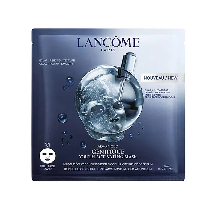 这里面可是满满的Advanced Génifique精华!特别适合特殊时期来稳定肌肤使用,膜布是Q弹的果冻质地,精华被吸收完膜布也会变成透明的,第二天上妆会很贴合哦,适合聚会前一晚使用。