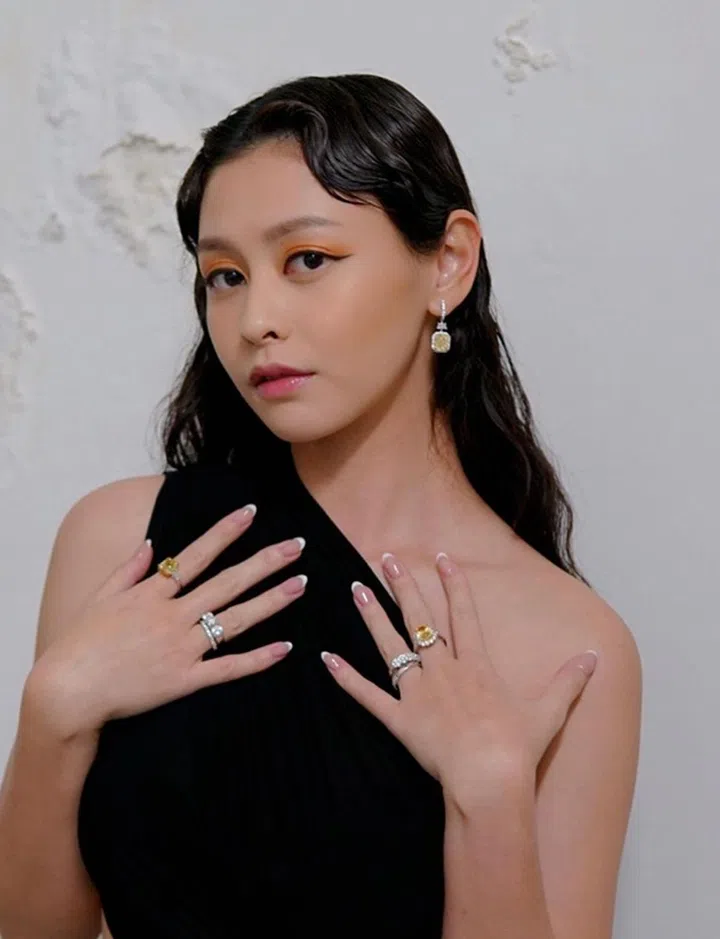 早在刷IG的时候就被Tasha的眼线吸引,跟她以往的清纯look有不同哦!齐刘海和发饰,更让她的整体妆容多了一份复古的富家千金感。