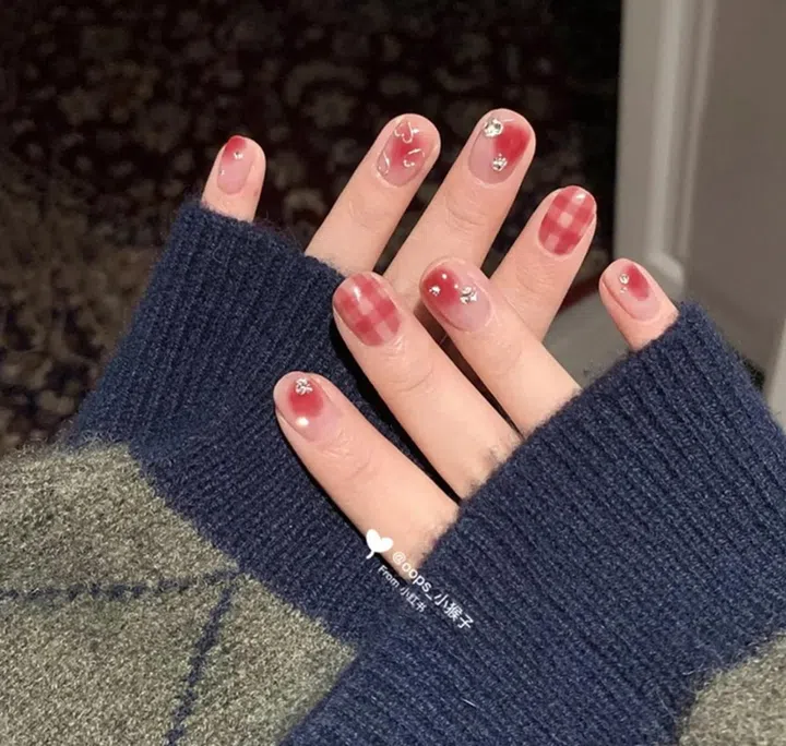 温暖的格子设计和晕染可都是小编喜欢的美甲元素,而这款美甲居然把这些元素缝合在了一起!红色一定要选择浓郁的复古红,不然晕染后的颜色会变浅,整体会缺少圣诞的血色感。