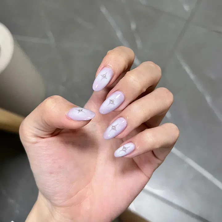 淡紫色是超级清新、温柔又千禧辣妹的颜色呢,但不少人会担心紫色显黑而一直犹豫不觉。其实这种淡淡的紫色上手很干净,只需画上简单的四芒星点缀,定会小众又出众!