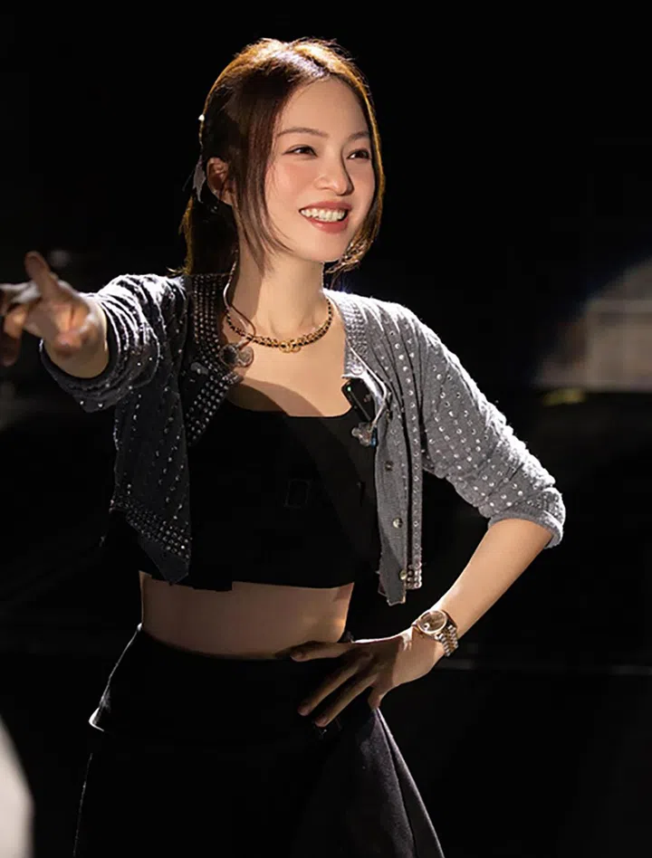 姐姐张韶含则更喜欢土橘色系的收缩色画法。她在演唱会上的妆容运用到了W型腮红的画法——从太阳穴开始,到苹果肌,再稍微带过鼻子,缩小面部轮廓,打造轻亚裔感的妆容。