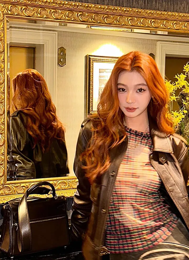 可酷可温柔的脏橘色被易梦玲染出了新高度!在不同光线下也会展现深浅不一的橘色,在灯光照射下的颜色最为明显。但这款发色只能维持1-2个月,每洗一次颜色都会发生变化。