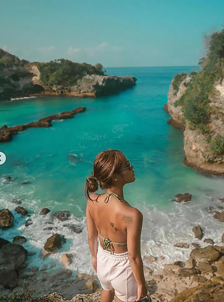 Davika这款些许凌乱的低丸子头跟Gucci宽松慵懒风的毛织外套是绝配吧?而且小编觉得低丸子头的发型很适合Davika的侧颜,组合起来的线条超美。
