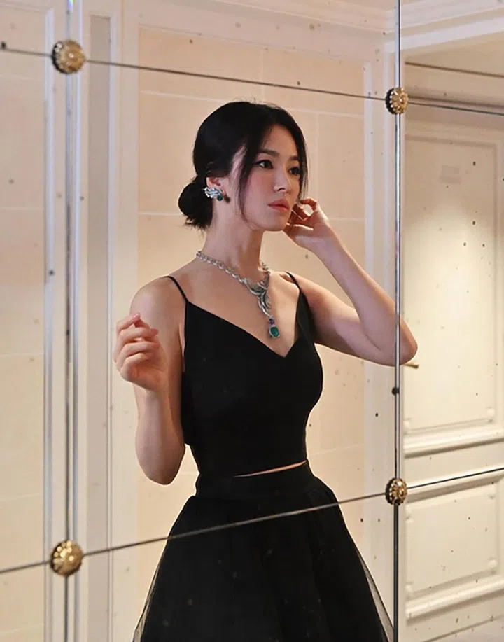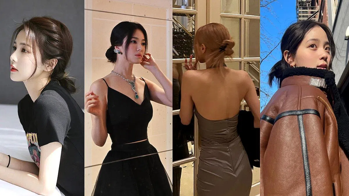 宋慧乔在剪“一刀切”短发前向来都是长发气质美女,而低丸子头也是她出席活动甚至私底下都很爱的发型哦!高贵中透露着慵懒,搭配法式刘海,真是一绝。