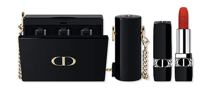 继去年推出金色链盒唇膏套组(盒子表面有巴黎总部的建筑浮雕)大受欢迎后,+今年Dior来了第二波!2022的链盒唇膏套组,为精致百搭的黑色外观,搭配金色的链带,根本就是派对小包啊!