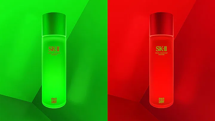 SK-II HyperFestive Limited Edition Design PITERA™ Essence换上了鲜艳的红色和绿色霓虹包装,象征着大胆地表达自我,炫放自信。SK-II PITERA™ Essence就是我们俗称的“神奇水”,也是SK-II最标志性和最畅销的产品。 它含有超过 90% 的 PITERA™——一种天然提取的成分,可为肌肤带来晶莹剔透的变化。