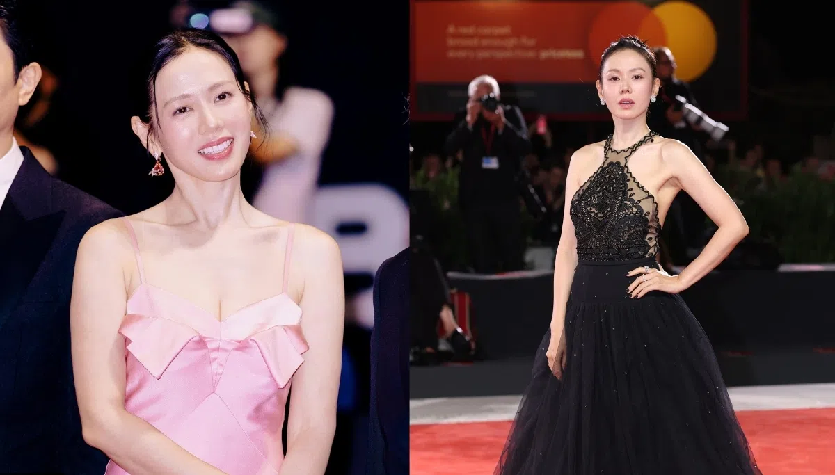 孙艺珍出席活动时,总是光彩照人,令人好奇女神的冻龄妙法?图:McQueen(左)及Daniele Venturelli/WireImage/gettyimages (右)提供