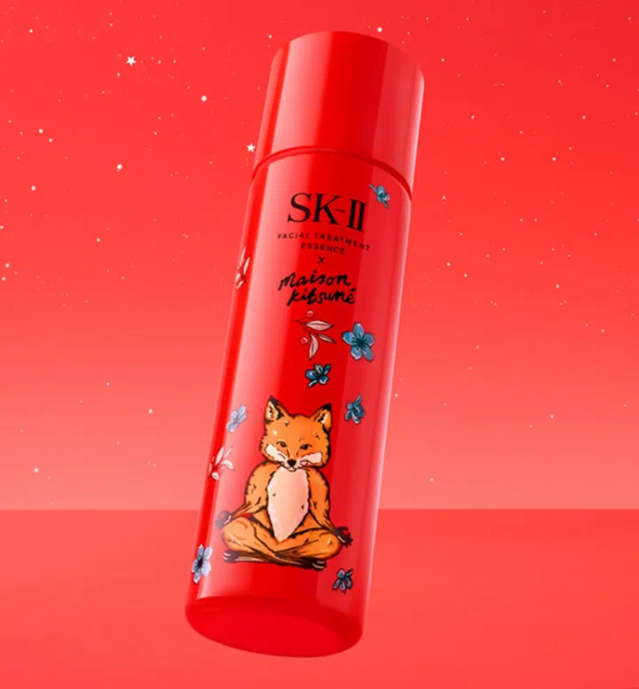 SK-II今年联合法国轻奢品牌Maison Kitsuné推出全新限定联名小狐狸神仙水礼盒!神仙水共有红瓶小狐狸和蓝瓶小狐狸两款,气定神闲的红瓶小狐狸代表白天,而闭眼休息的蓝瓶小狐狸代表夜晚的状态。再加上瑜伽元素的融入,瞬间把节日的氛围感拉满。