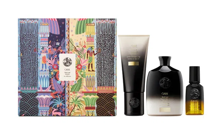 Oribe每年假日都会跟著名的艺术家和工匠合作,今年也不例外。品牌今年与艺术家和设计师Louis Barthélemy 合作,打造出以自莎草卷轴为灵感的作品。图中拥有绚丽长发的女生,强韧的发丝像尼罗河一样自由,从而体现了通过护发来实现自我肯定。Gold Lust也是品牌最经典的系列,会是圣诞礼物的好选择。
