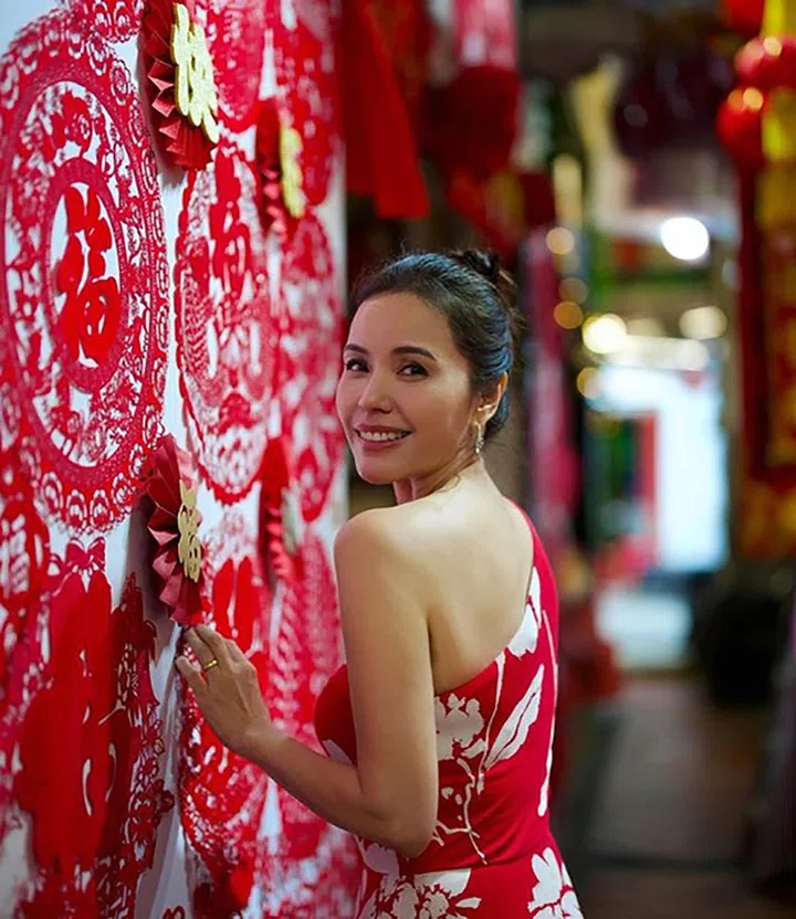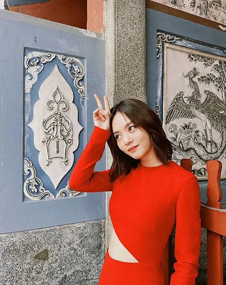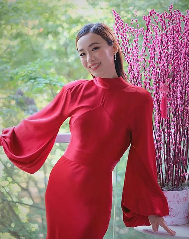 红裙配红唇~今年Rebecca身穿全红的拜年outfit,因此选择了稍微暗淡的“女团色”唇色来搭配,以免整体造型过于艳丽。低调的“女团色”可提亮肤色,同时带来青春的气息。