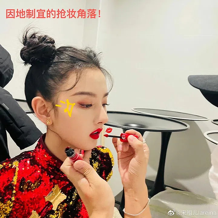 宋祖儿上春晚当天共有两套造型和妆容,图片中双丸子头唇妆用到的就是大名鼎鼎的Armani Beauty Lip Mastro#12啦!她还与化妆师共同录制了妆容教程供大家参考。