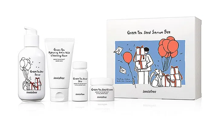 Innisfree今年与韩国插图品牌étoffe合作,画出了一个个温暖的聚会场景——人类和动物都通过如掰面包的形式来表达爱意和感激,展开异想天开的童话冒险。绿茶籽精华算得上品牌最具性价比的产品了,补水能力好且能被快速吸收,圣诞套装更是可爱又轻便,推荐给学生党和肌肤敏感的女友们。