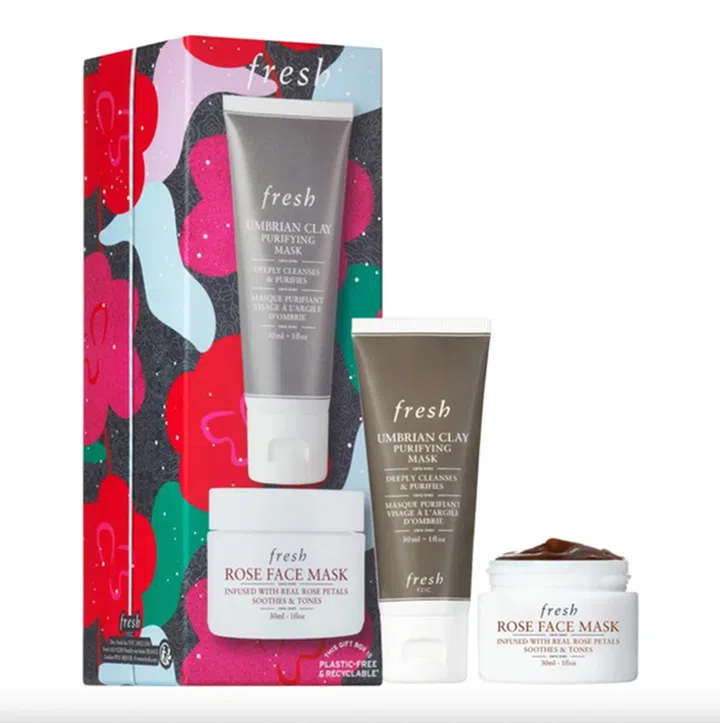 不说不知,Fresh以面膜闻名。当中最受欢迎的玫瑰保湿面膜也在这个旅行装的组合里,它含有真实的玫瑰花瓣,还含有玫瑰水、黄瓜精华和芦荟凝胶,可发挥舒缓和镇静作用,在用完清洁泥膜后使用正合适!