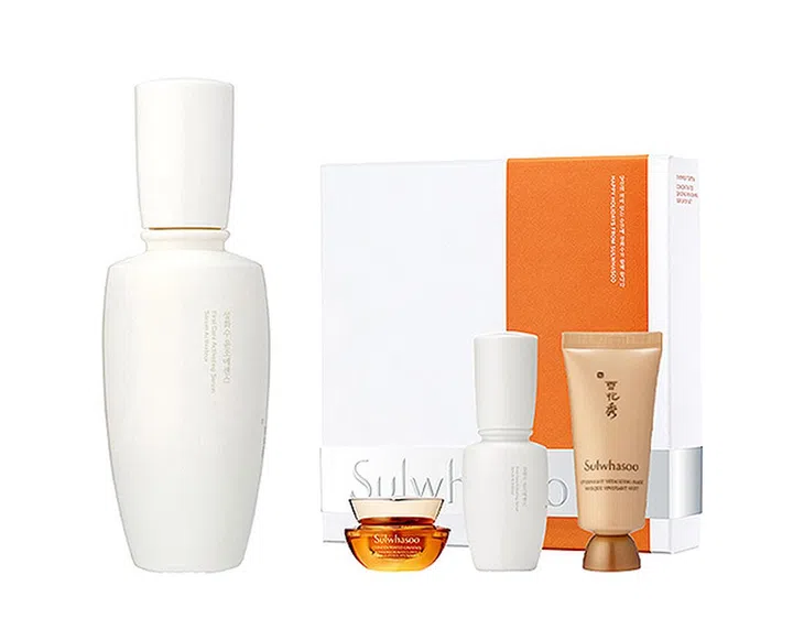 前阵子品牌为庆祝10周年里程碑,特别为“镇店之宝”First Care Activating Serum推出了设计灵感来自韩国传统白瓷的限量版设计,没想到这次圣诞礼盒里也有它,还有它的迷你版本,是不是超级可爱? 众所周知,First Care Activating Serum可修护肌肤,最大效益促进后续护肤品的吸收。除了精华,组合里还包括了Concentrated Ginseng Renewing Cream EX Classic和Overnight Vitalizing Mask。