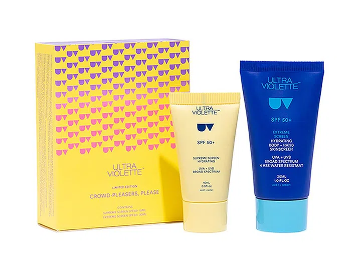 Ultra Violette的圣诞礼盒不仅价格实惠,外表也是满满的正能量。Crowd-Pleasers组合如其名,希望通过两款品牌最热销(Supreme Screen SPF 50+和Extreme Supreme SPF 50+)的防晒乳为女友们提供即全面又安心的防晒,从而赢得大家的欢心。旅行装防晒乳体积小,是海岛出游的首选!